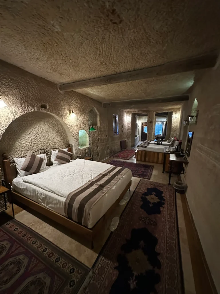 Țin să fac o menționare: în Göreme prețurile sunt foarte mari, o medie fiind de 150 euro/noapte, dar pot fi și mult mai ridicate. O variantă mai low budget ar fi Uchisar care este la 10 minute de Göreme unde se află și castelul Uchisar care face parte din toate tururile disponibile în zonă. Nu este același lucru, la modul că nu prea sunt hoteluri în peșteră și nici să recreeze acest lucru, dar dacă asta nu contează pentru tine, știi că sunt la jumătate de preț.