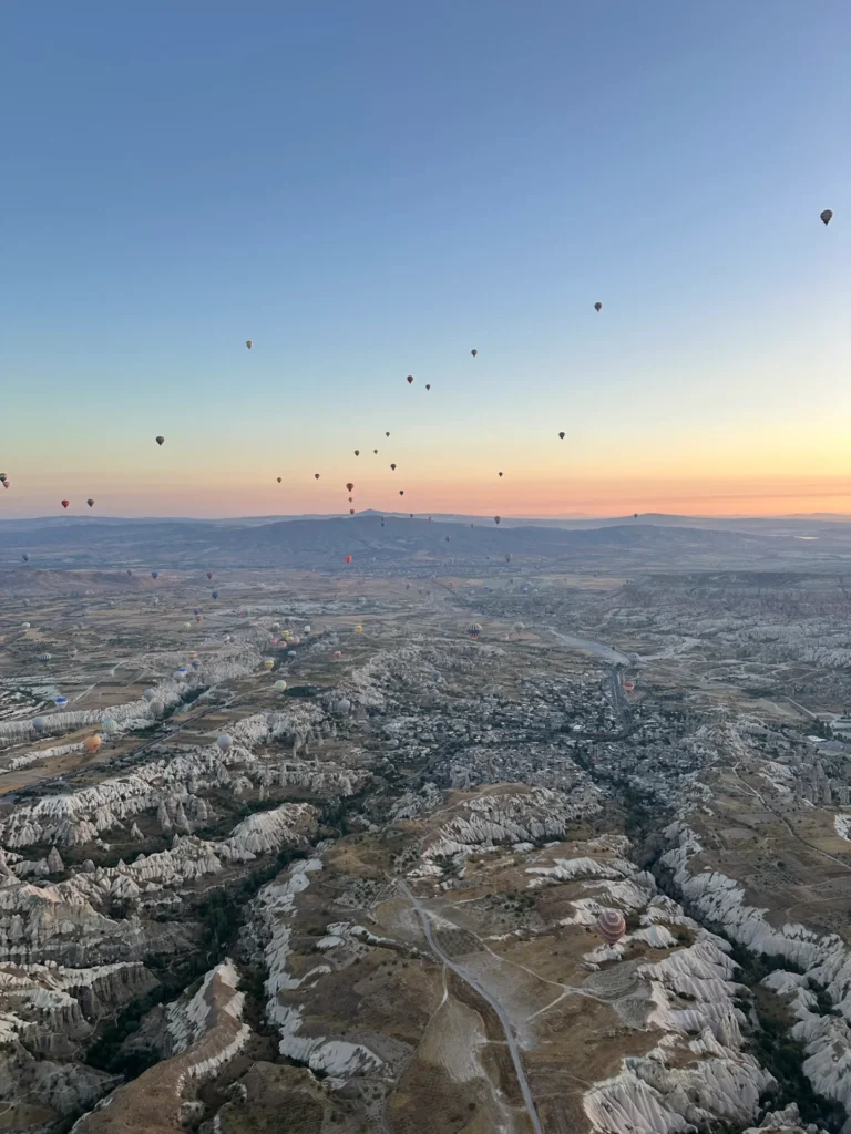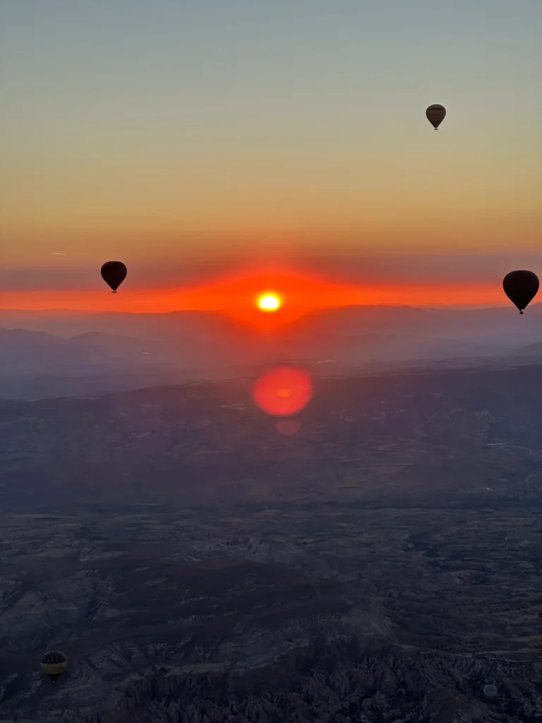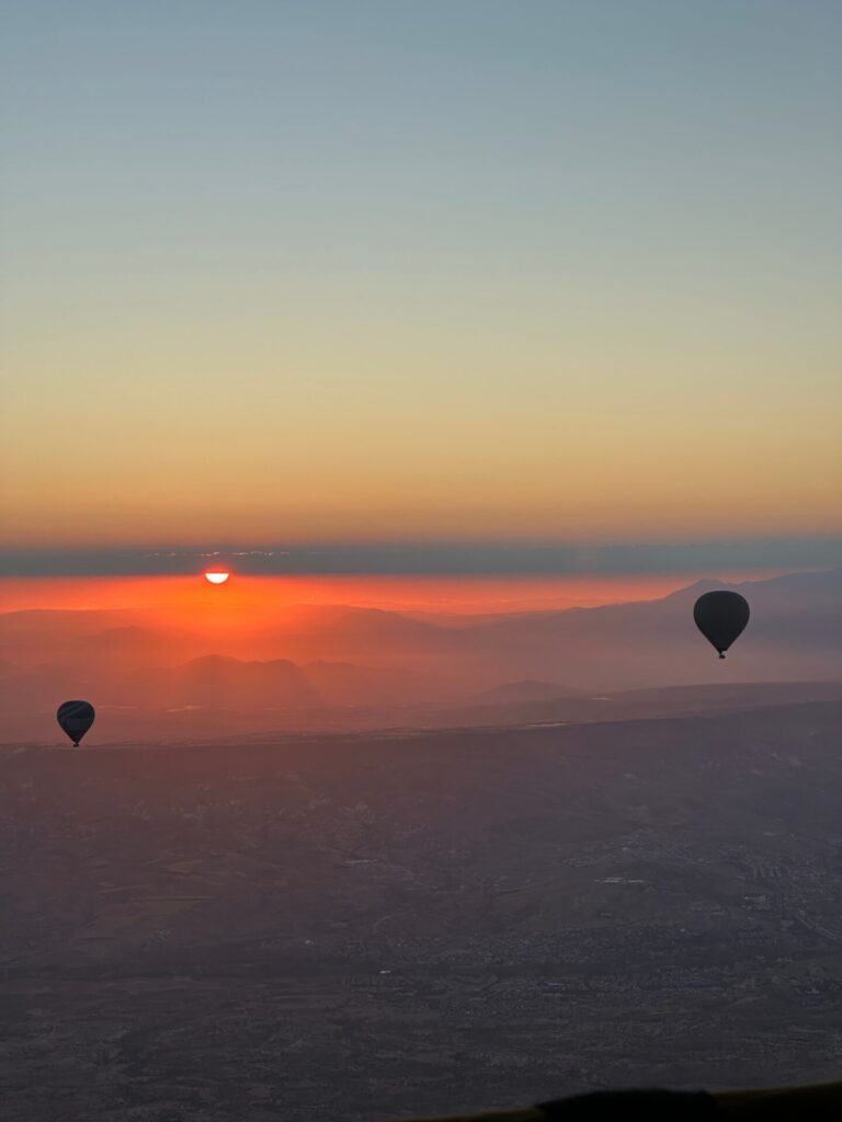 Am fost preluați în dimineața cu pricina de către un mini van și duși în valea de unde a început plimbarea. Nu am un loc exact, fiecare companie pleacă dintr-o vale și se coordonează perfect pe cer pentru a nu se intersecta baloanele. Și sunt extrem de multe în fiecare dimineață. Ne-am ridicat în jur de 5:30 și am admirat cel mai frumos răsărit din viața noastră împreună cu munții din jur și cu toate văile acelea timp de o oră și jumătate. Nici nu am știut când a trecut timpul și nici nu am simțit frigul dimineții (pentru ca da, este destul de frig) pentru că efectiv ne împlinisem un vis pe care îl aveam de foarte mulți ani!