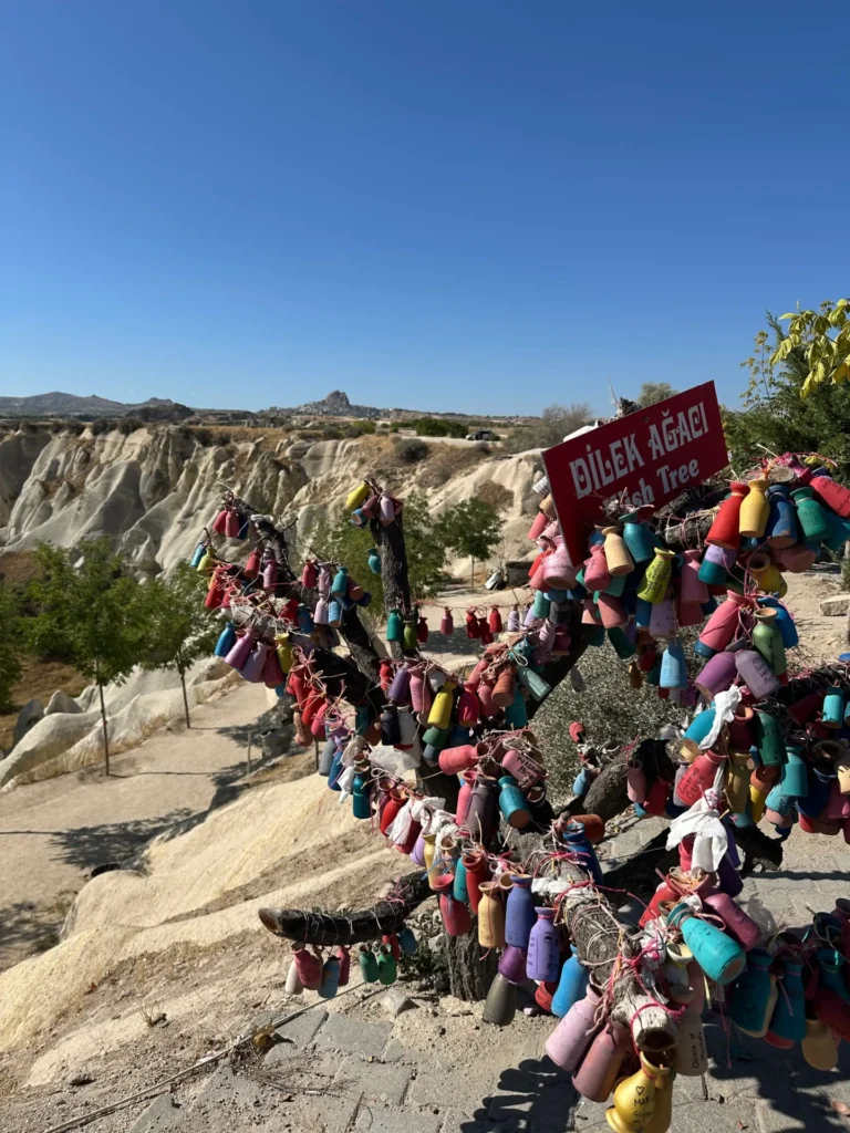 Noi am aterizat cu balonul în Uchisar și am fost preluați de mini-van de acolo și duși înapoi la hotel, unde am luat micul dejun. Și pentru că deja se făcuse cald și voiam să prindem cât mai multe obiective turistice nu foarte aglomerate, am plecat către Love Valley, la 15 minute de mers cu mașina de Göreme. Ea este denumită astfel datorită formelor mai ciudate ale tufurilor vulcanice care pot atinge și 40m înălțime. Denumirea mai vine și datorită atmosferei romantice create de localnici aici, pentru că există o tradiție prin care îți scrii un gând/o dorință pe un mini tuci pictat și îl atârni de copaci.