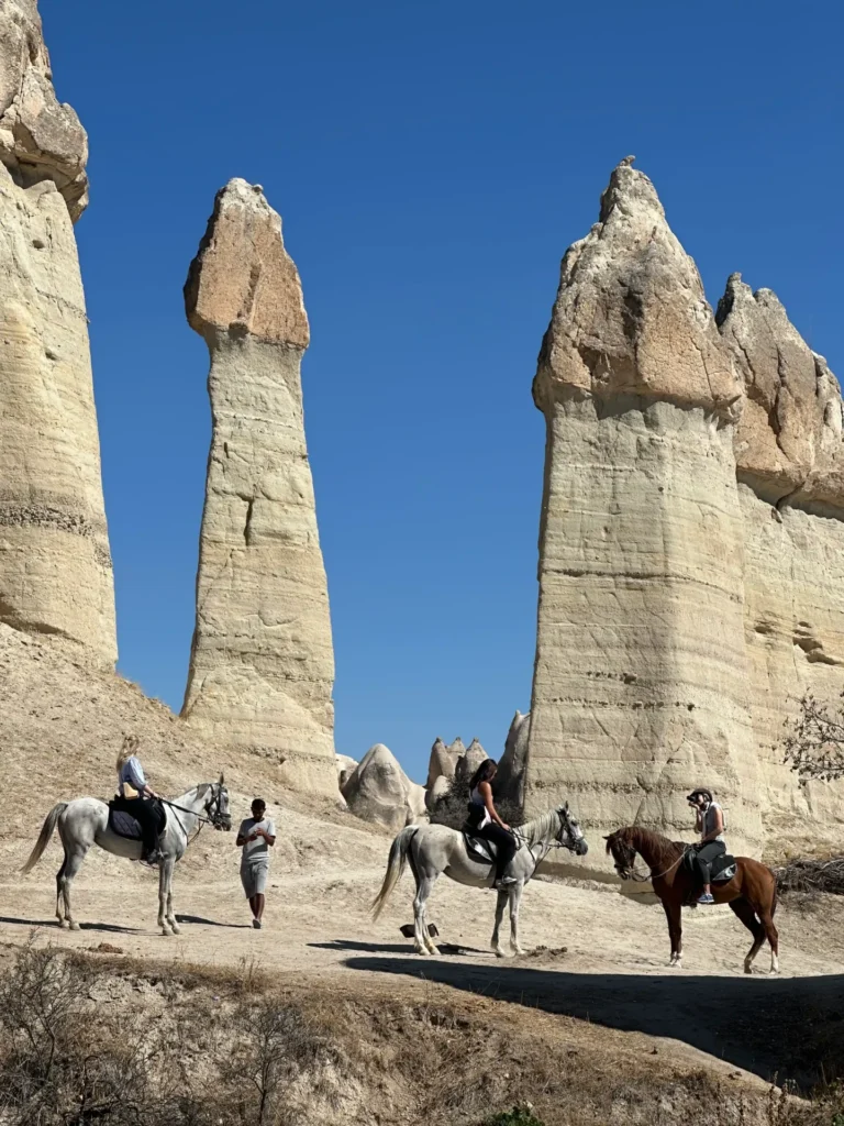 Aici este punctul de pe Google Maps unde poți opri mașina și te poți plimba prin vale. Este un traseu de 3km, mai mult ca o plimbare, cu un peisaj extraterestru în jur. Poți să te plimbi și călare aici, însă nu aș sti să îți spun de unde să rezervi pentru că nu am fost interesați de acest aspect. „Există și o legendă locală care povestește despre doi iubiți aparținând unor familii învrăjbite, a căror dragoste tragică ar fi dus la „ploaia de pietre” care a creat formațiunile din vale – simbolizând iubirea și împăcarea.”